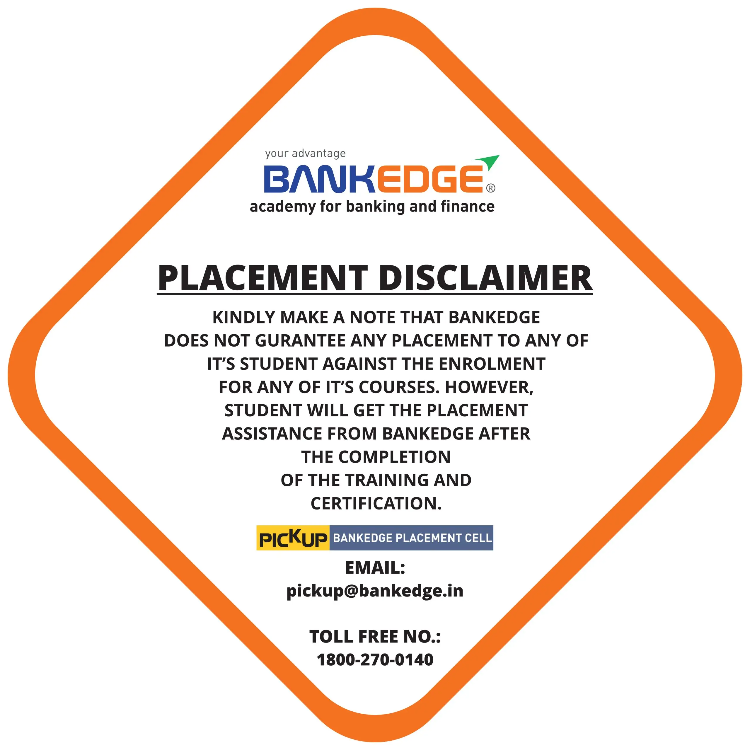 At BANKEDGE we mean every word of the phrase “START WITH TRAINING -FINISH WITH A JOB” this is the core of what we do at Bankedge. When you come to us and enroll for a program with us, we are committed to make your dream of getting a stable secure opportunity with the best of the Banks or financial institutions come true. Our dedicated Placement Cell called strong>PICKUP works towards this objective with a clear focus and passion.